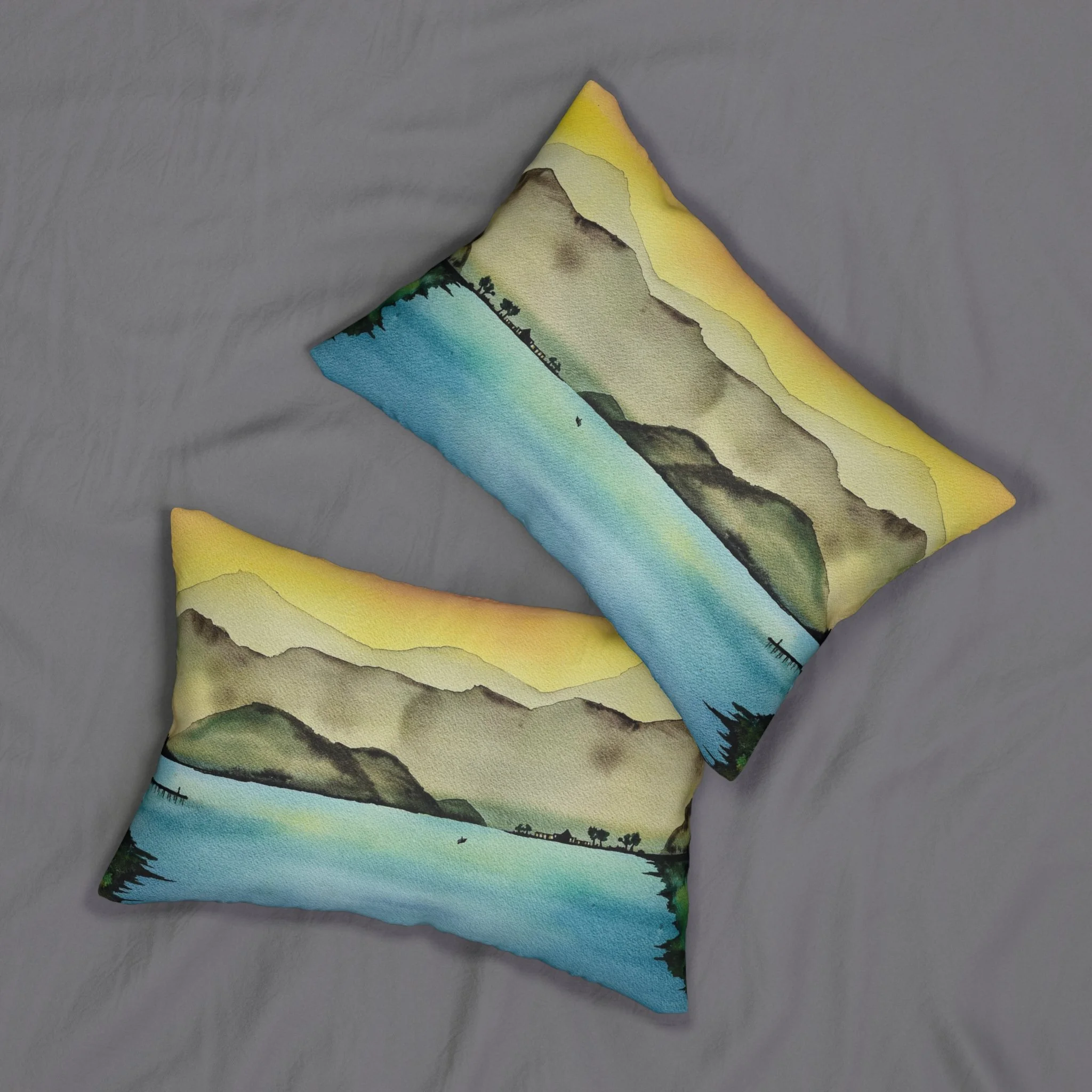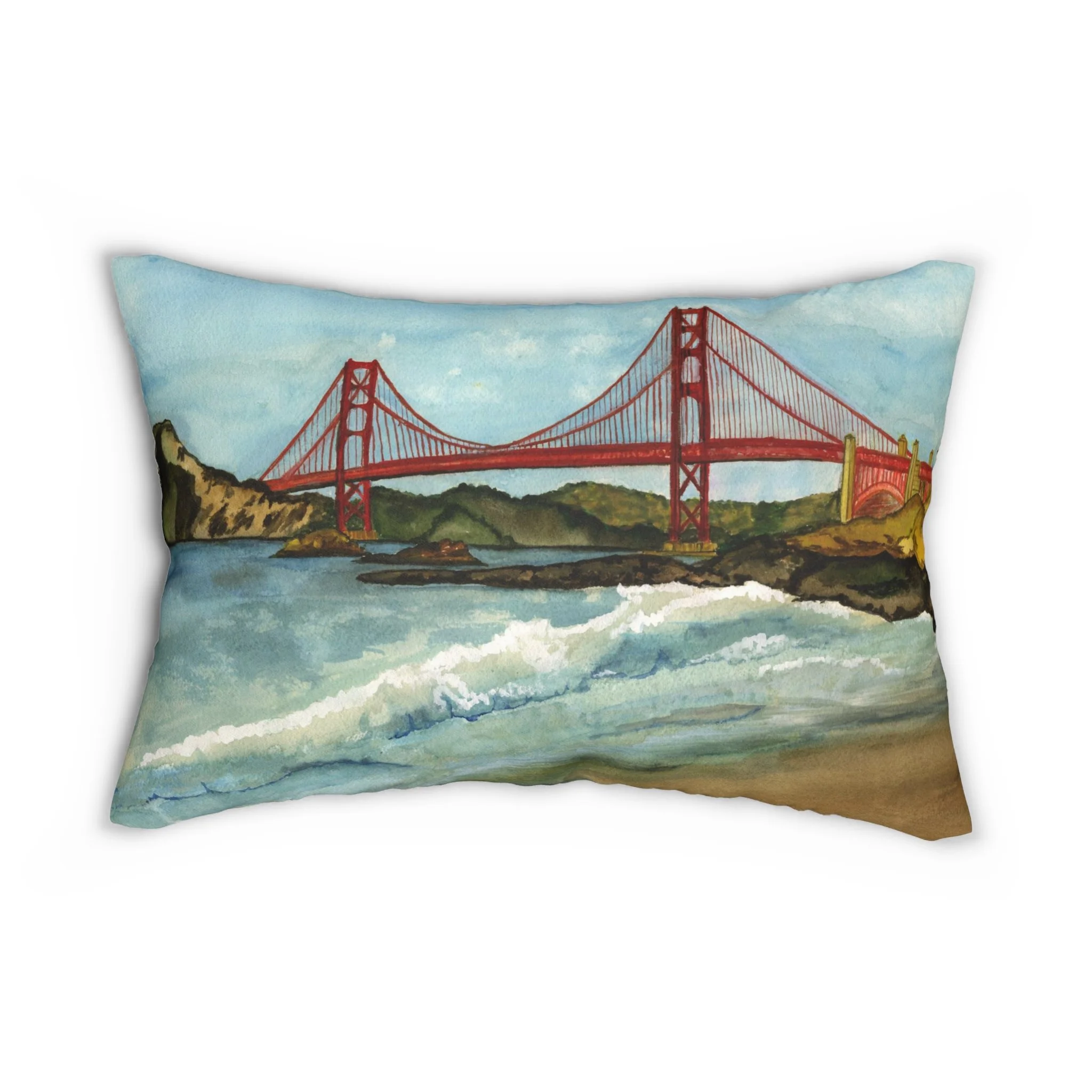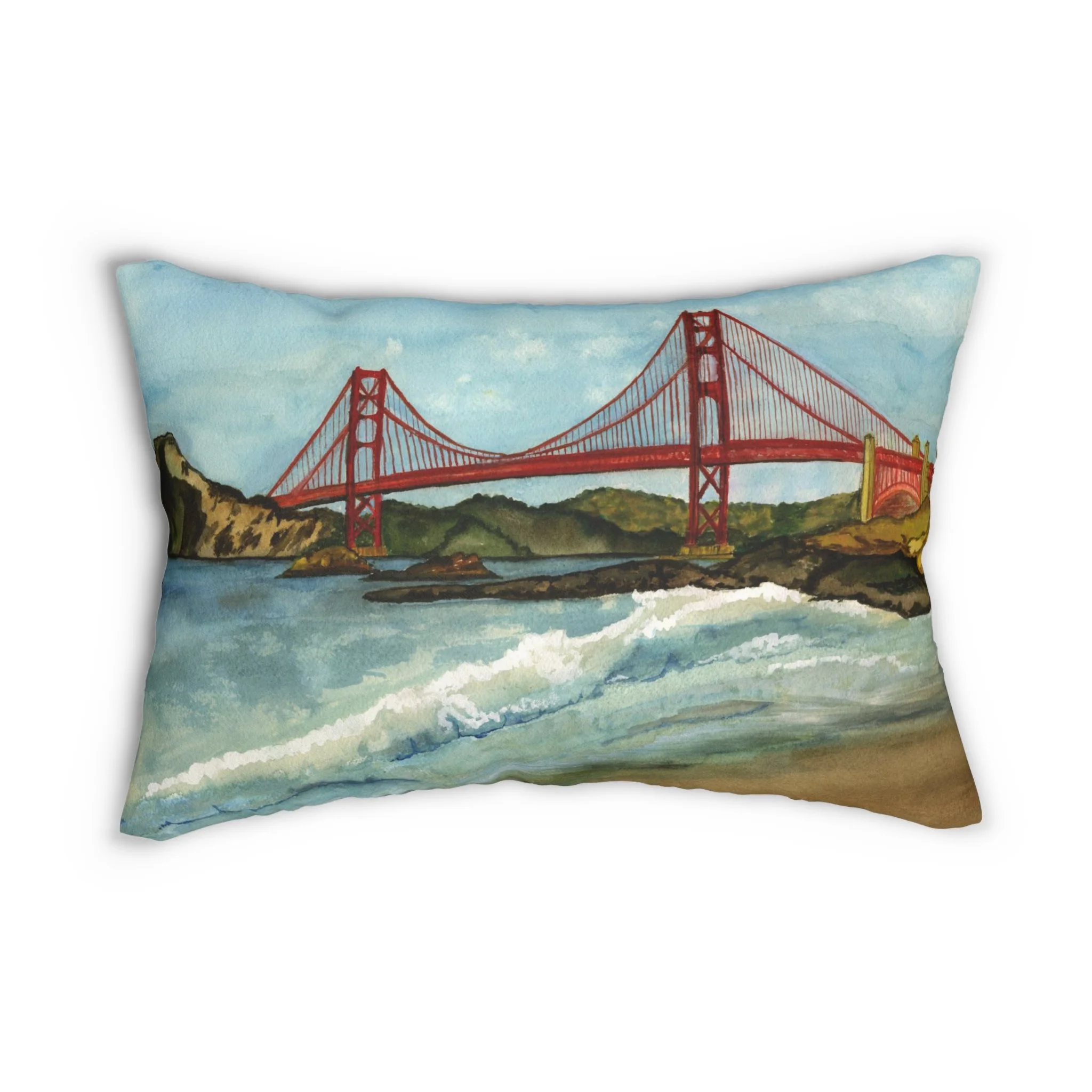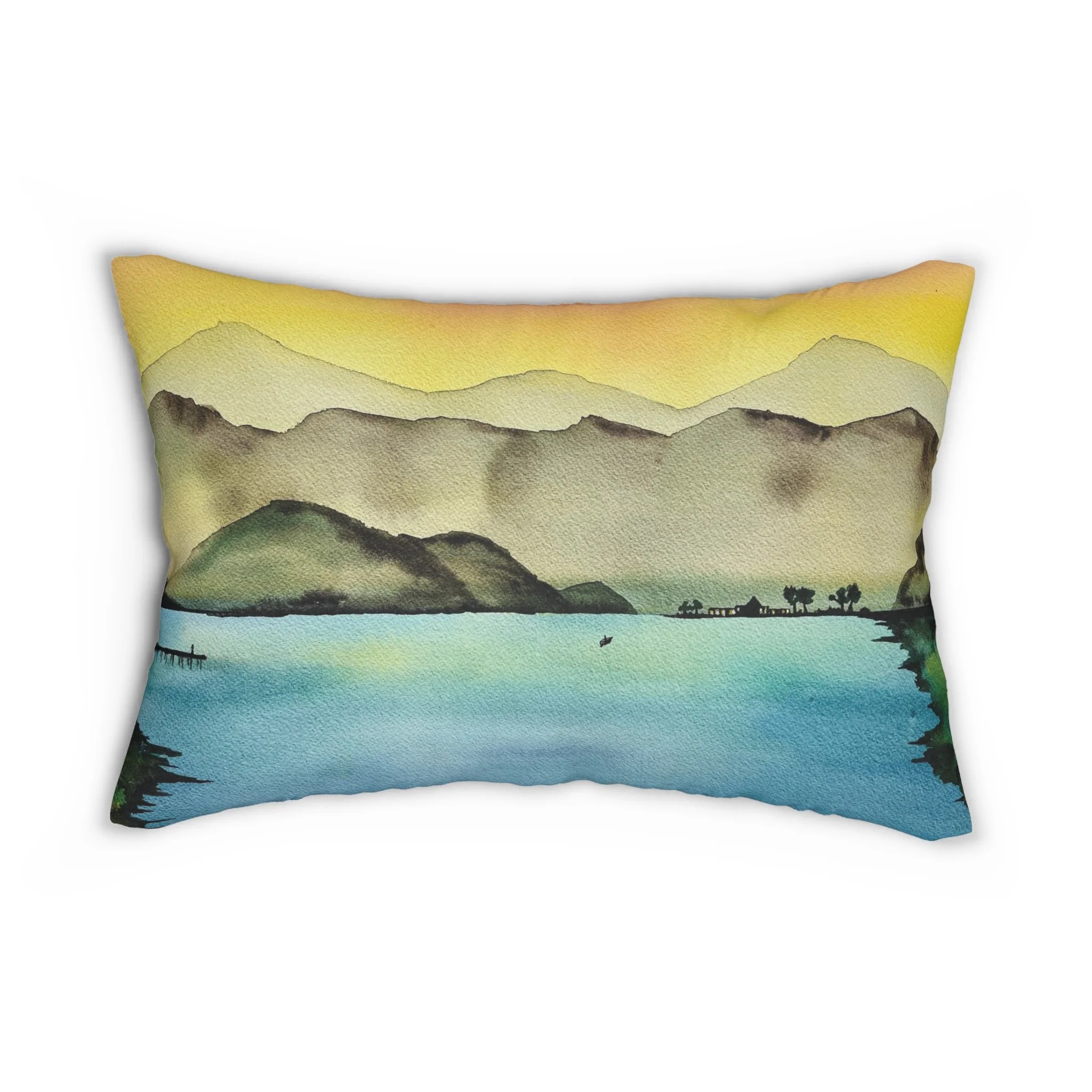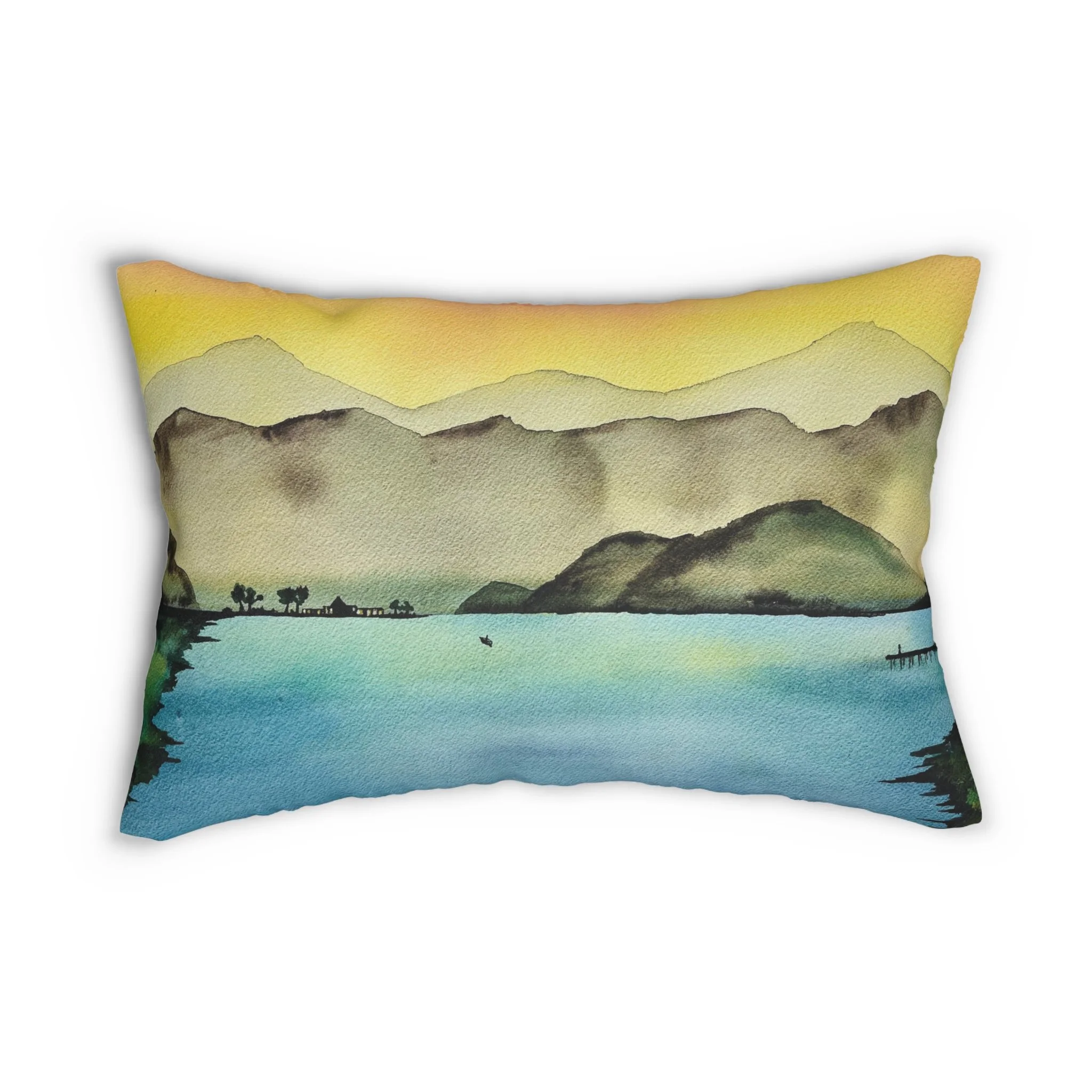 Add this coastal island vibe lumbar pillow to your home decor today. Featuring my original with my original ink and alcohol art, this pillow is printed on both sides, showcasing exquisite artistry. Each pillow includes a stuffing insert for comfort and convenience. A hidden beige zipper maintains a polished and sophisticated look.